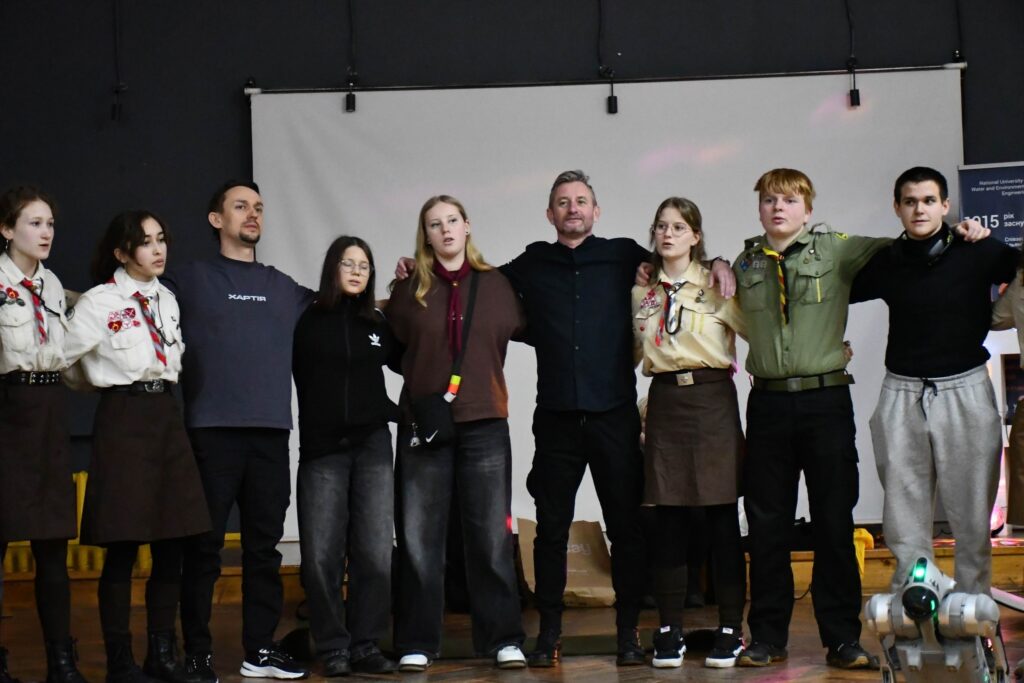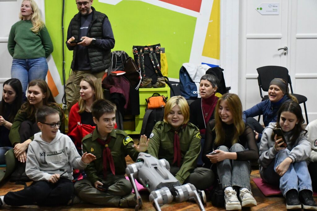 Говорили про молодь, її роль у майбутньому України, співали пісень і просто гарно провели час. А ще познайомилися з роботом-псом Елвісом, який давав “п’ять” і навіть малював лапками сердечко.